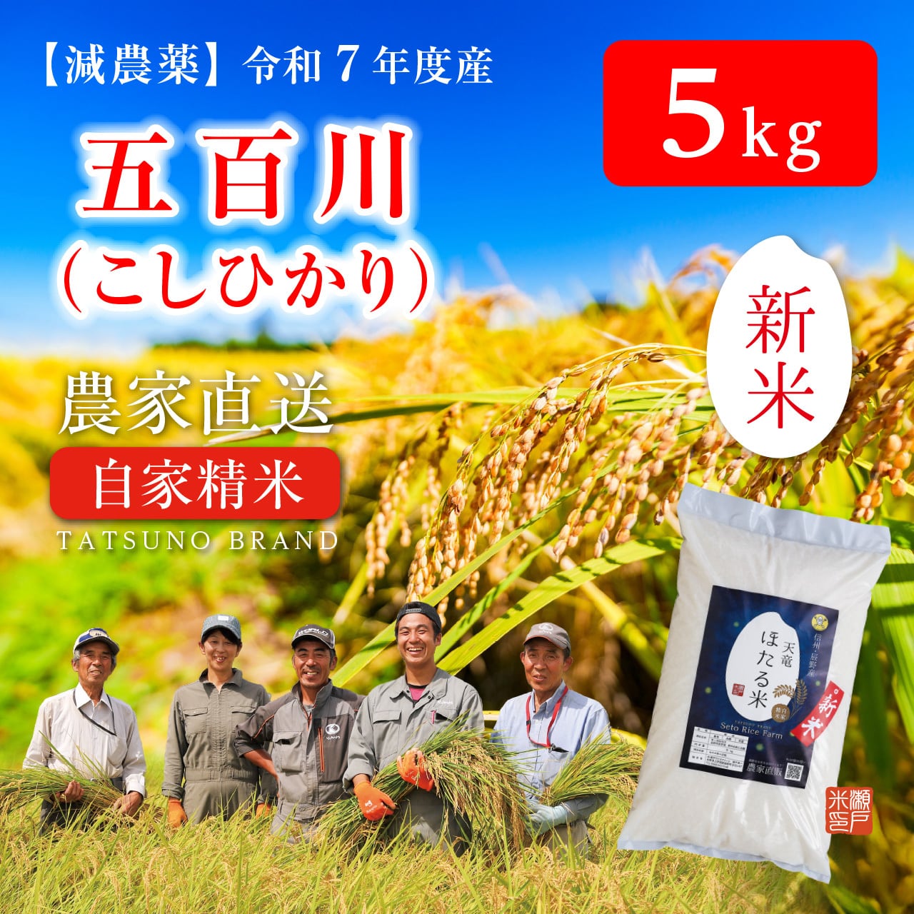 R7年度 新米[減農薬]五百川 こしひかり 5kg 甘味と強い粘りが特徴で冷めても美味しい極早生の品種